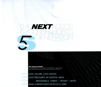 世界技術的領導者 1. 背部淡藍色的碳纖維網層 2. 革新的內墊-前後半部人體工學剪裁, 敏感部位減少壓力 3. AEPD- 人體工學的六片式比賽型剪裁 4. 更大更高密度的記憶纖維 5. 側邊A430布料 6. 內墊A431布料 7. 前半部高彈性布料 8. 腿部不對稱剪裁防滑條 9. 包裝: 熱壓成型的盒子內含小罐雪米霜, 清潔劑, 洗衣袋與使用手冊 顏色: